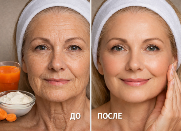 Крахмал создаёт лёгкий подтягивающий эффект, сметана питает кожу, а морковный сок содержит много полезных витаминов, которые помогают освежить цвет лица. В результате кожа выглядит более ухоженной, а мелкие морщины становятся менее заметными.