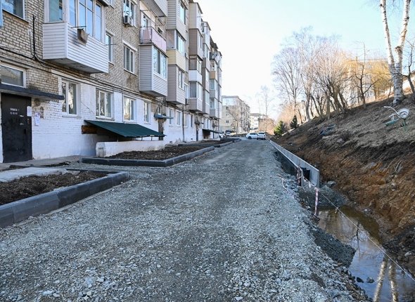 Ремонт внутридворовых проездов осуществляется по программе благоустройства дворовых территорий, инициатором которой выступил губернатор Приморского края Олег Кожемяко.